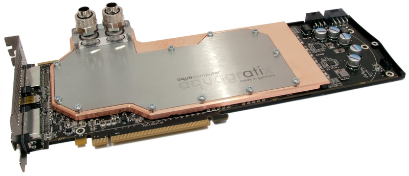 Pünktlich zum Verkaufsstart der neuen ATI Radeon 5970 Grafikkarten bringt Aqua Computer die perfekte Kühllösung. Der aquagratix für HD 5970 überzeugt durch geringes Gewicht (ca. 200 Gramm niedrigeres Gewicht als der Original-Luftkühler), kompakte Bauweise und neue Features. Hierzu gehören die speziell bearbeiteten hochglänzenden Kühlflächen genauso wie die neue Mikrostruktur oder die beidseitigen Anschlussmöglichkeiten.